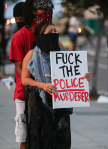 Protesters gather in down town Los Angeles during the Protests for the murder of George Floyd that took place in LA on Sunday, May 31, 2020.