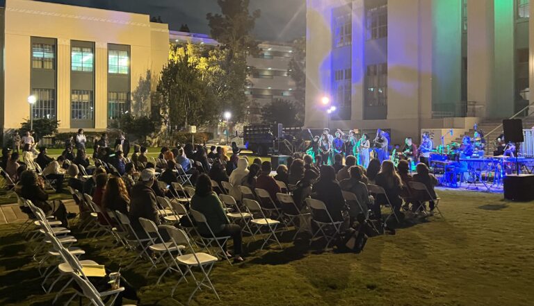 Share: Pasadena City College’s newly created Popular Music Ensemble drew an estimated 80 to 100 people on Wednesday, November 12, at the newly renovated Mirror Pools, delivering a high-energy set that showcased the abilities of students from “Room 212.” The performance, directed by Dan Cole and Jonathan Richards, served as the group’s first major live outing of the semester. The ensemble opened with Earth, Wind & Fire’s “September,” which would’ve been seasonally perfect had it not already been mid-November. Even with the moment long gone, …