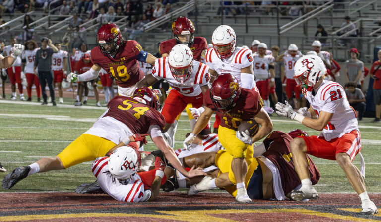 Share: With their backs against the wall and down their starting quarterback, the Pasadena City College Lancers dug deep and made a last-second goal-line stand to escape with a thrilling 24-23 win over Palomar Saturday night at Robinson Stadium. Starting quarterback Max Grizzell lit up the first half with 301 passing yards, including a spectacular 34-yard strike to tight end Javery Mayberry and a 20-yard touchdown to wide receiver Ethan Hubbell. But disaster struck late in the second quarter when Grizzell was sacked and lost …