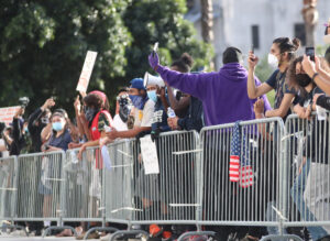Protesters gather in down town Los Angeles during the Protests for the murder of George Floyd that took place in LA on Sunday, May 31, 2020.