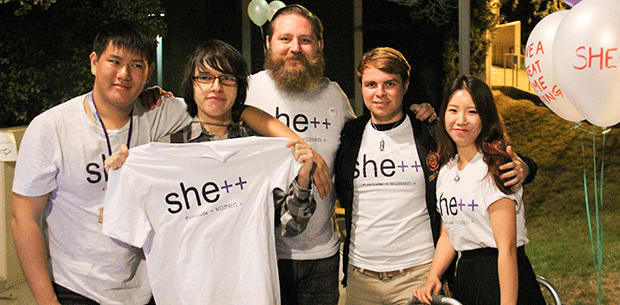 Share: Purple and white balloons accompanied simple, hastily-made signs with “She++” scrawled in black marker dotted throughout campus. For most, the phrase is a foreign combination of a word followed by plus signs. But to tech-heavy individuals, the message is clear: these posters were directing foot traffic to a female-focused computer science lecture in the UU forum. Follow: