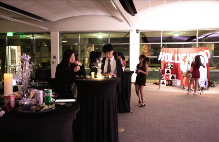 Share: It was sunset at PCC with students dressed in old Hollywood attire lined up outside the Circadian. Inside, the music roared, and lights peeked through the glass at the line waiting outside. Attendees presented their PCC ID as a requirement, while non-PCC students had to sign waivers before entry. Walking in, people went to sit at tables decorated with playing cards, Hollywood stars, and movie tickets. Over time, the room became filled with chatter from students donning clothing from different eras. “The theme of …