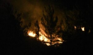 A hillside on fire on Friday, October 25, 2019 in Santa Clarita, Calif
