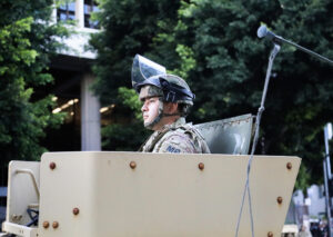 The National Guard is deployed as Protesters gather in down town Los Angeles during the Protests for the murder of George Floyd that took place in LA on Sunday, May 31, 2020.